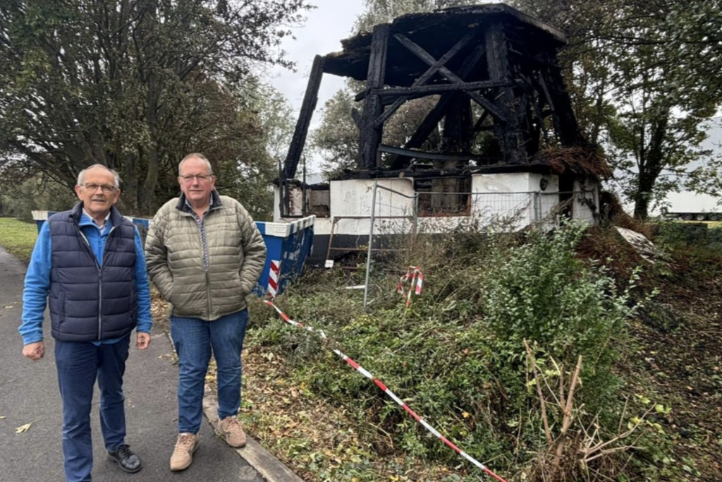 In Bleiswijk heerst verdriet na de brand die zondagmiddag de oude molen aan de Spiegeldijk volledig verwoestte. Hoewel de wieken er al jaren af waren en het gebouw leegstond, zien veel inwoners het als een groot verlies. “Het is toch weer een stuk historie dat verdwijnt,” zeggen Gerard en Johan Ottevanger, twee broers die speciaal langskwamen om te kijken wat er nog van over is.
